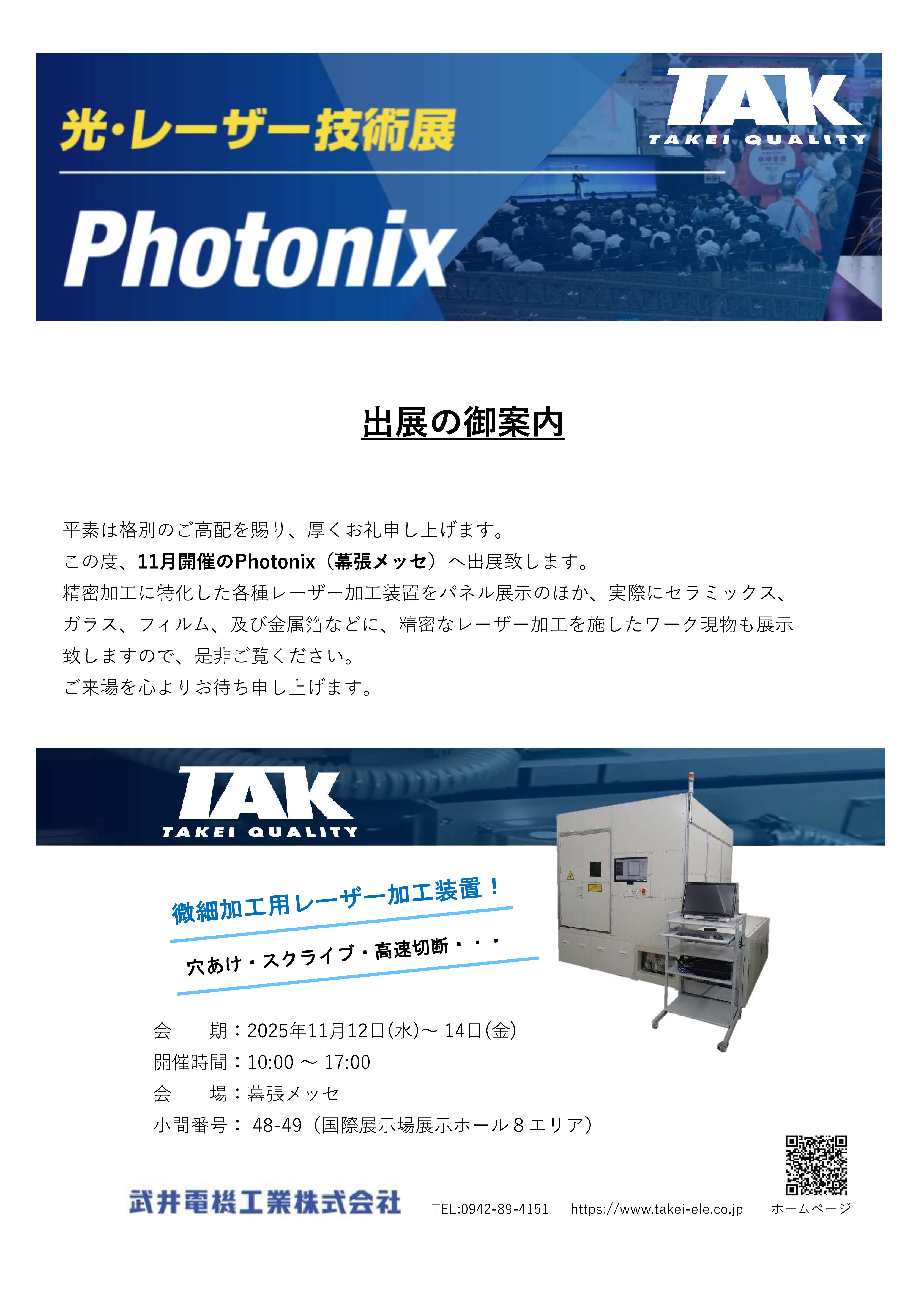 Photonix - 東京 光・レーザ技術展に出展いたします(2025年11月12日~14日)
